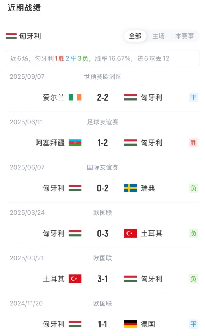 匈牙利首发:12-巴拉兹-托斯、7-内戈、4-阿提拉-绍洛伊、6-奥尔班、11-科尔克兹、17-斯泰尔斯、14-博拉、10-索博斯洛伊、21-亚历克斯-托特、18-佐尔斯-纳吉、19-瓦尔加